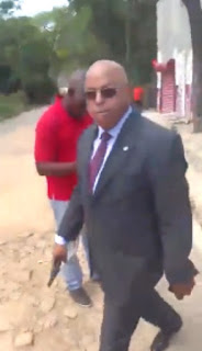 En un audiovisual que acompaña esta publicación, se observa al congresista con una pistola en la mano y uno de su seguridad con un arma larga.