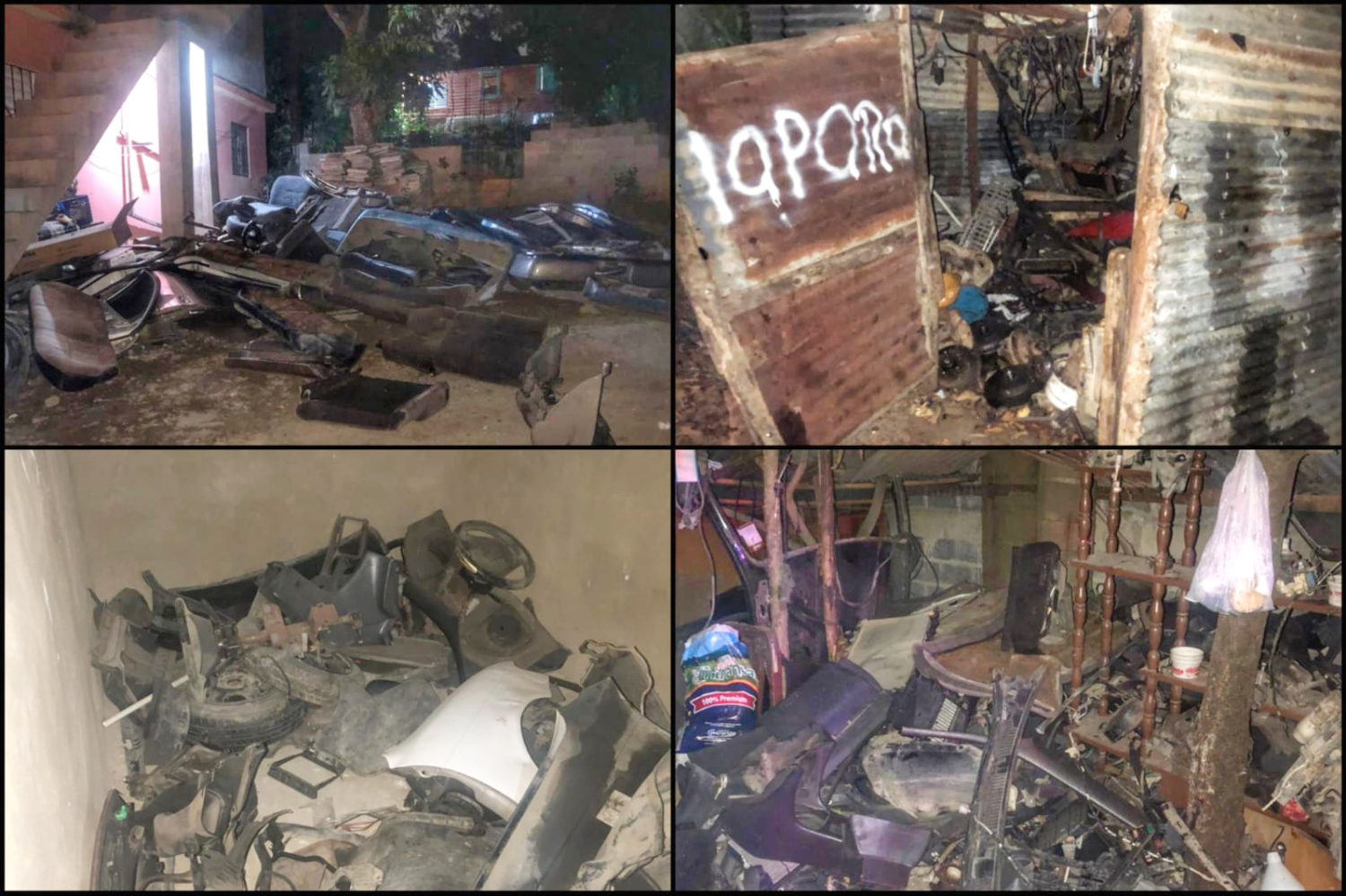 En el referido lugar, los policías visualizaron piezas de vehículos que, al parecer, fueron desguazados para venderlos por piezas, encontrando allí 49 puertas de vehículos, 4 bonetes de carro, 13 baúles de carros, 5 cristales delanteros de carros, 5 motores de carros, 2 transmisiones de carros, 26 bómperes traseros y delanteros y 5 guías de carros.